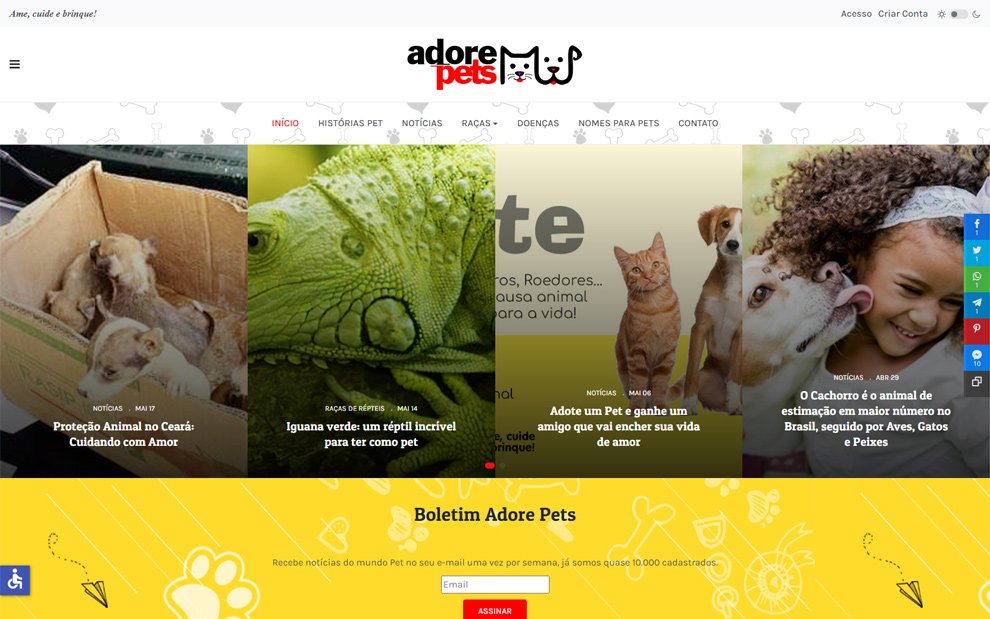 Embarque agora mesmo nessa incrível jornada virtual com o Adore Pets – ame, cuide e brinque! Não perca tempo, acesse www.adorepets.com.br e mergulhe em um universo repleto de informações valiosas, produtos exclusivos, diversão e muito amor para todos os animais de estimação. Afinal, eles são membros da família e merecem o melhor que podemos oferecer.