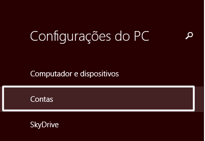 3 Passo – Após iniciar o painel de Configurações do PC, do lado esquerdo, click na opção “Contas”.
