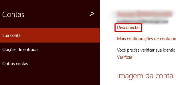 4 Passo – Em contas, do lado direito abaixo do e-mail, click em “Desconectar”.