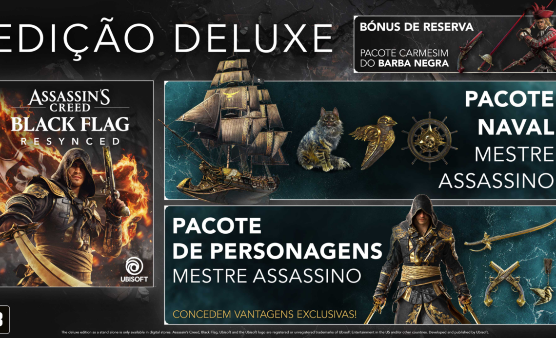 A pré-venda de Assassin’s Creed Black Flag Resynced está ativa na PlayStation Store, oferecendo as edições Padrão e Deluxe Digital para PS5. O jogo, uma remasterização completa de Assassin’s Creed IV, promete melhorias gráficas e de jogabilidade significativas. Fãs podem esperar uma experiência mais fluida e imersiva das aventuras piratas. O lançamento oficial está confirmado para **9 de julho**, com localização completa para o português do Brasil.