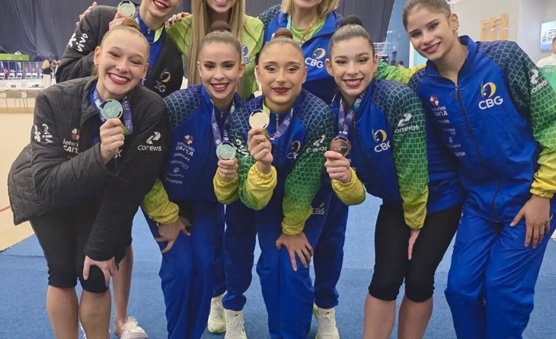 O quinteto medalhista é formado por Maria Eduarda Arakaki, Maria Paula Caminha, Mariana Gonçalves, Julia Kurunczi e Sofia Pereira, sob a liderança técnica de Camila Ferezin e com coreografia de Bruna Martins. A Confederação Brasileira de Ginástica (CBG) apoia e gerencia a participação da equipe nestes eventos decisivos e cruciais para o desenvolvimento da modalidade.