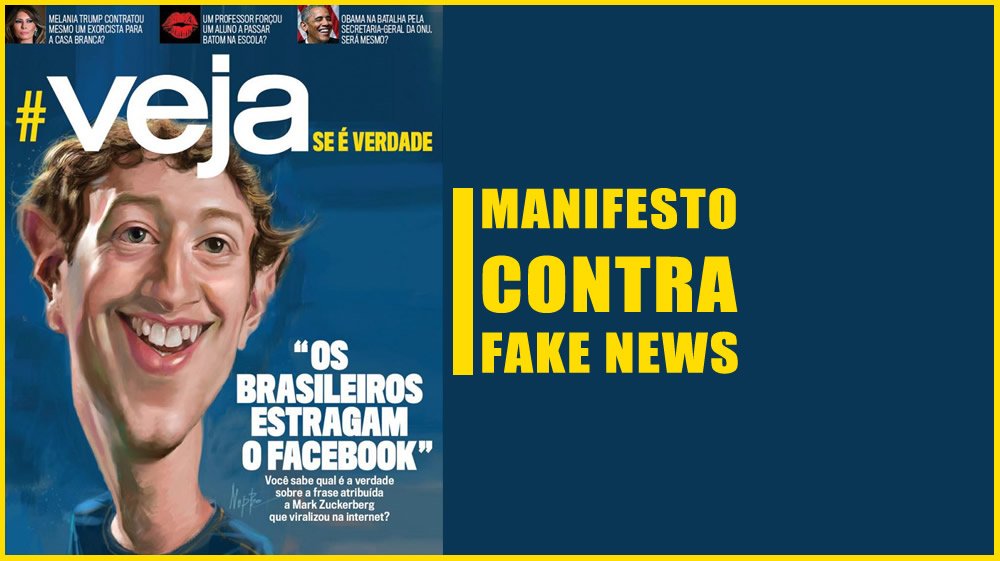 Em função da campanha, a Veja será distribuída com duas capas – uma verdadeira e outra falsa, que foi publicada de cabeça para baixo, com chamadas para notícias falsas já divulgadas na internet. Na capa falsa, aparece a caricatura do criador e CEO do Facebook, Mark Zuckerberg, com a declaração “Os brasileiros estragam o Facebook” acompanhada da pergunta: Você sabe qual é a verdade sobre a frase atribuída a Mark Zuckerberg que viralizou na internet?. O impresso apresenta em três páginas editoriais internas essas e outras notícias falsas com a identificação das fontes que publicaram as mentiras no universo digital.